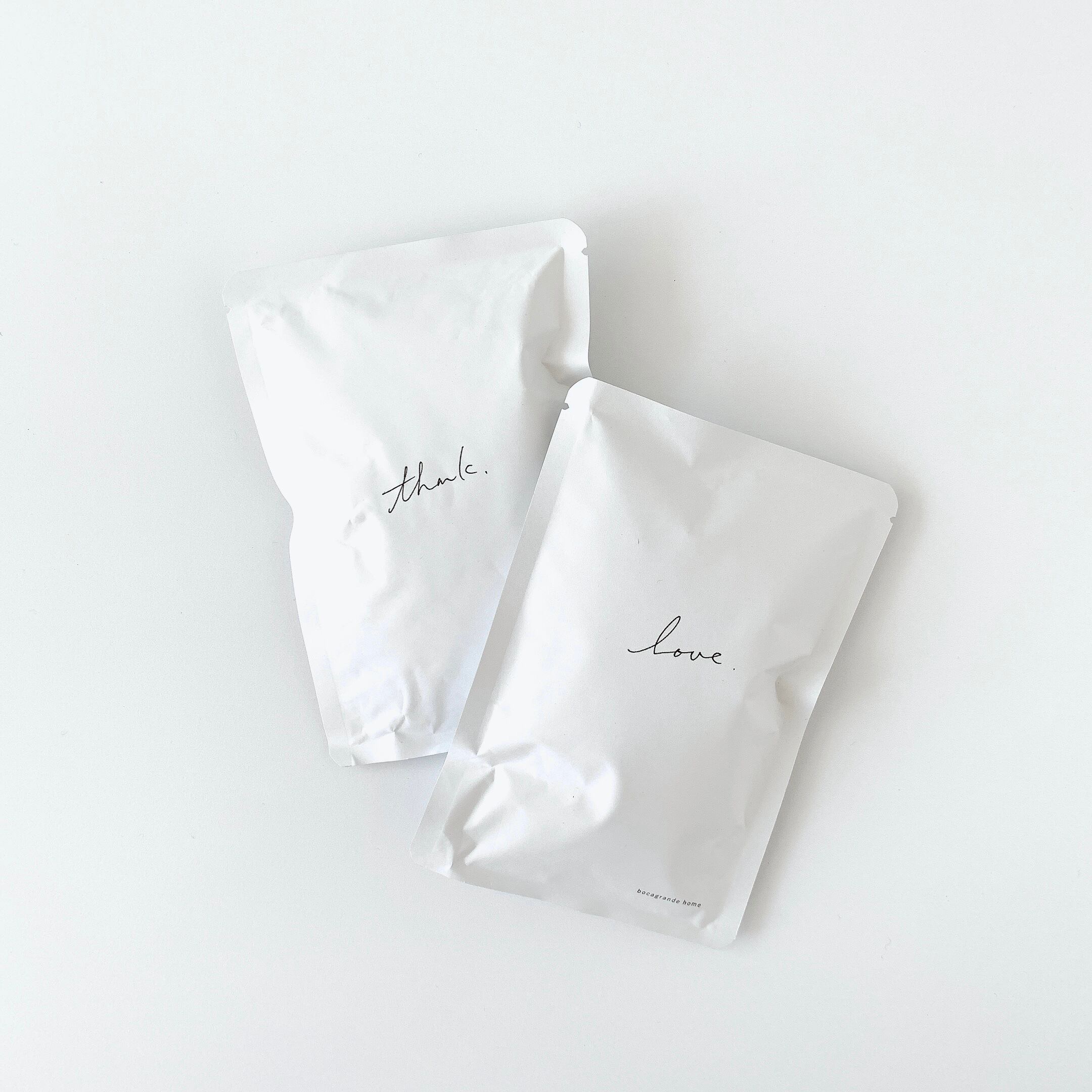 ・coffee・・・”thank” のメッセージ入りの一杯分のドリップパックが入ったパッケージ。