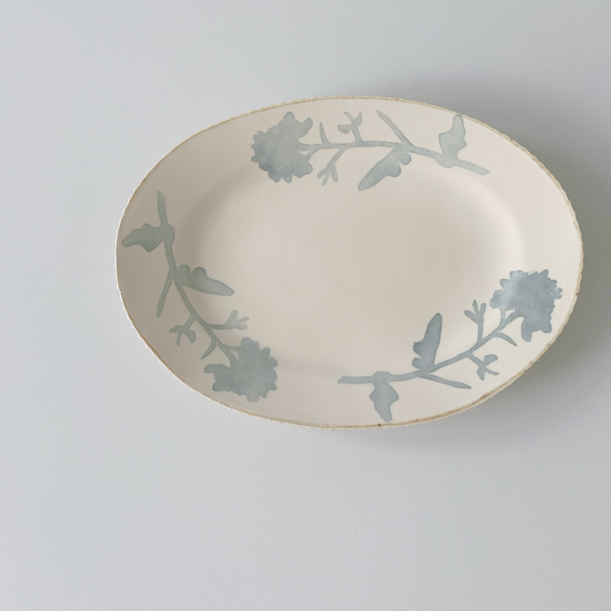 Katsura Saeka 染付けオーバル皿 L - 菜の花 -