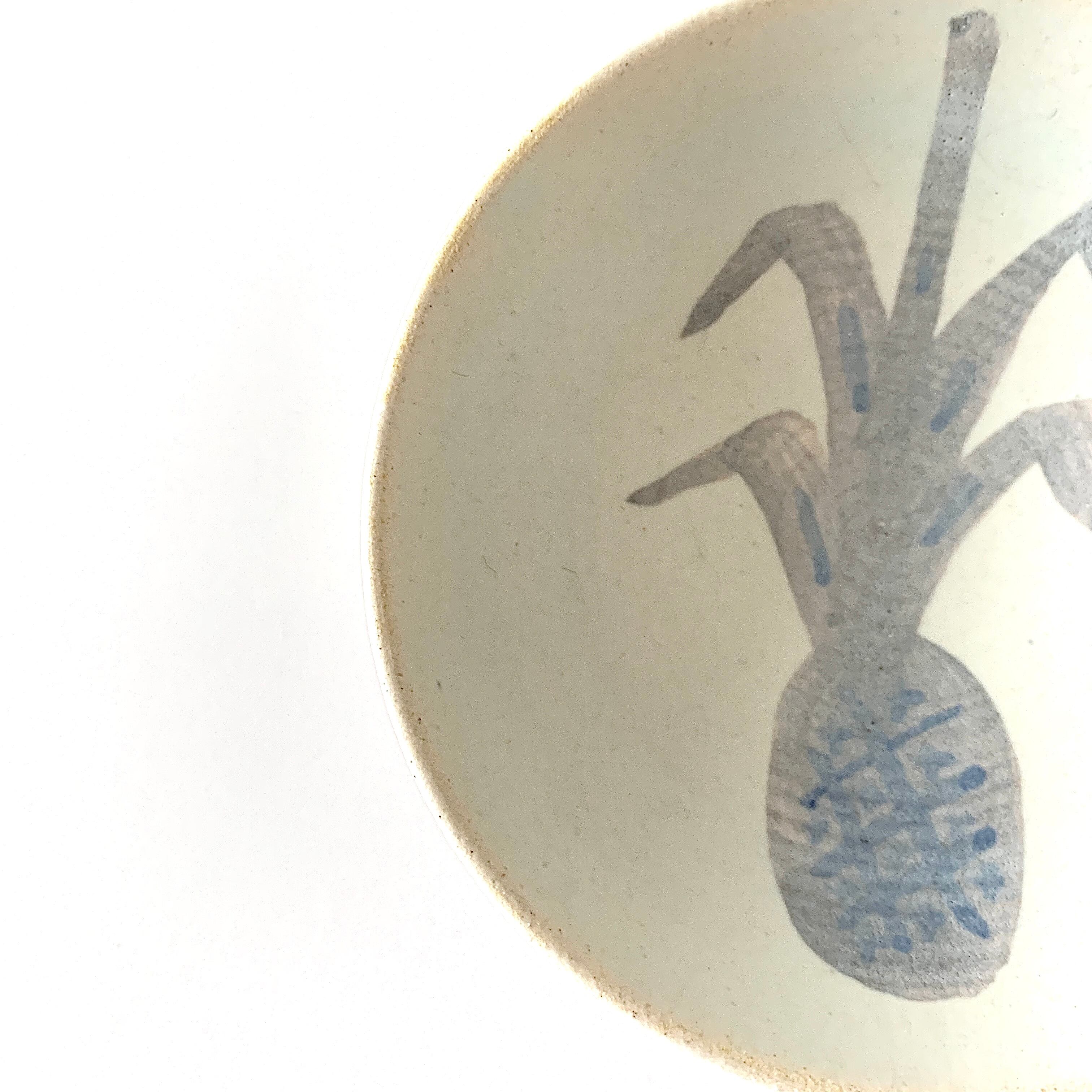 涼やかなパイナップルのモチーフの平皿 Sサイズ。一つ一つ手書きで絵描かれた桂さんらしい配色のパイナップル ににっこりしてしまいそう。夏の食卓のお供に。