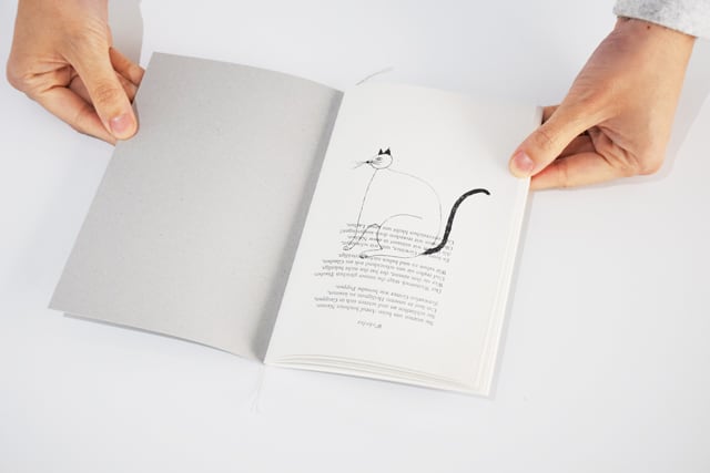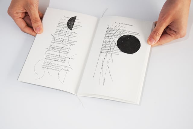 本作は、2016年に京都の珈琲店miepump(現在は鳥取に移転)で開催されたドローイング展の作品を1冊にまとめたもの。アンティークの詩集のページに、西淑がドローイングを施したシリーズ。元々印刷されている活字を陰影や柄に見立て、新たな息を吹き込んだ作品群。